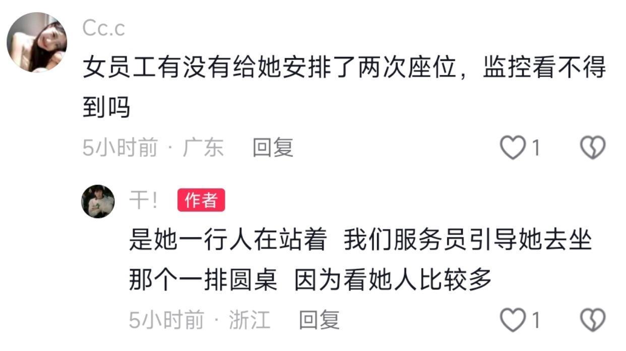 餐厅的当事男子也在博主评论区硬刚,称博主一分钱没消费,却一直坐在最佳观赏位,难道他还不能去沟通吗?